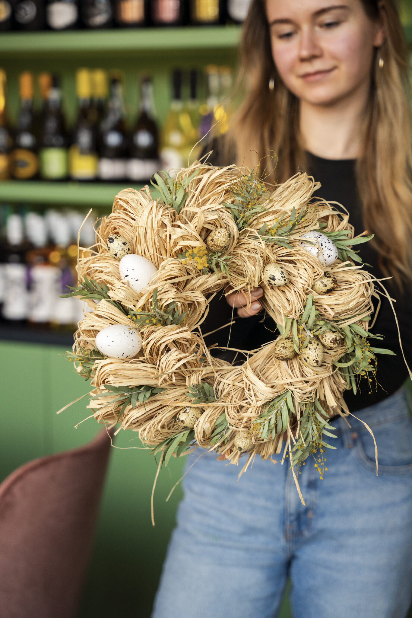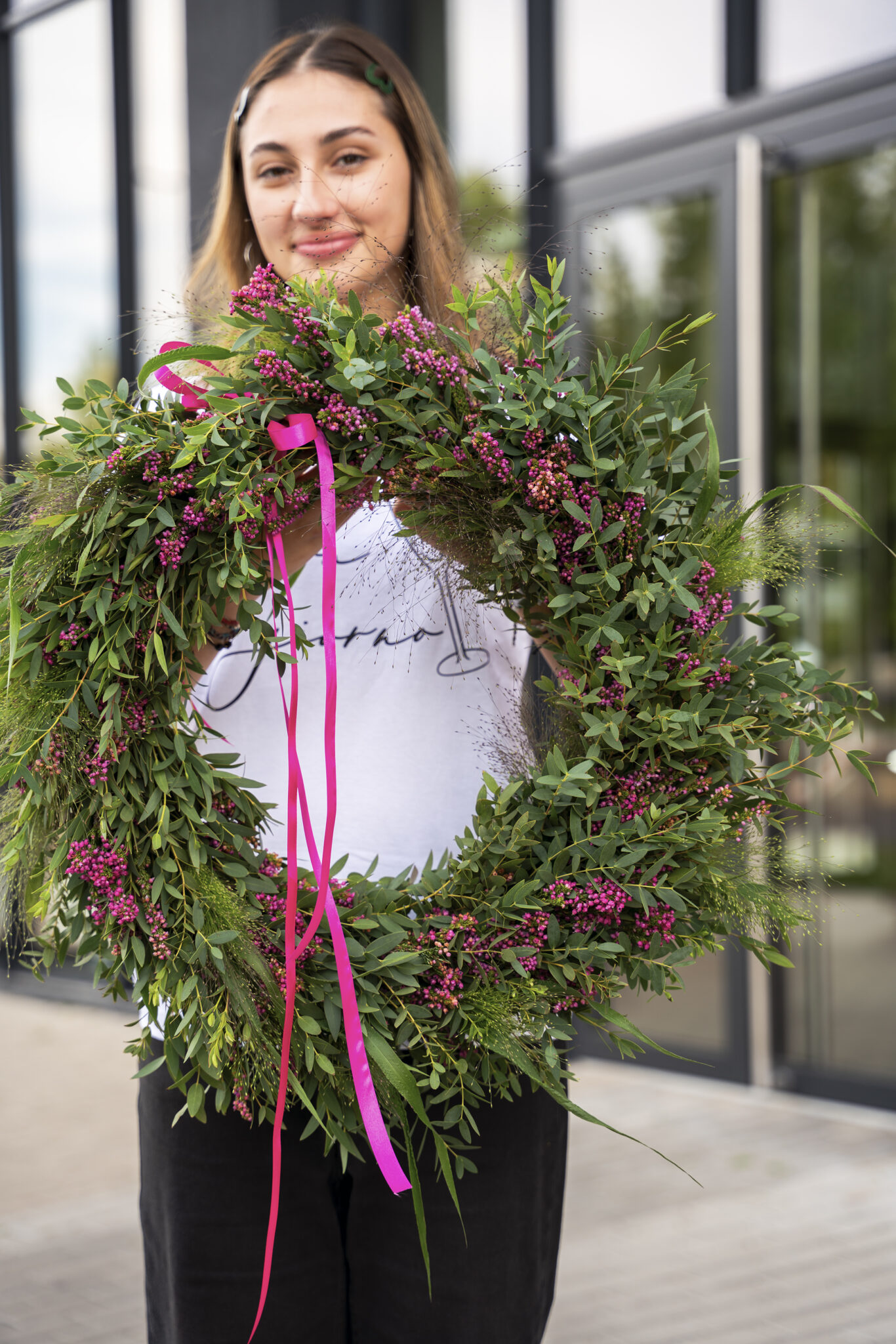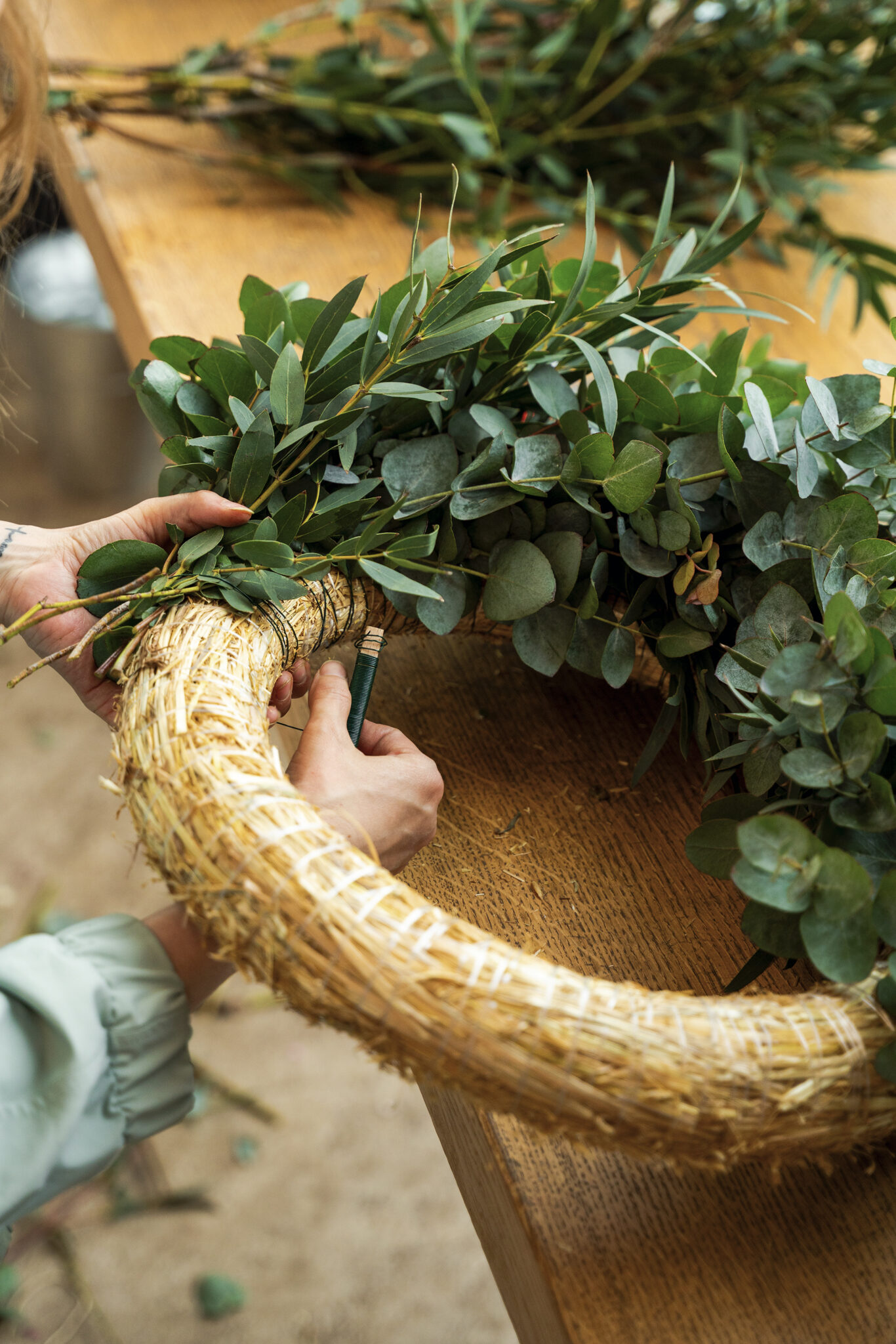 Na našem workshopu si můžete vybrat, zdali si uvážete věnec z eukalyptu, gypsy nebo pampové trávy.